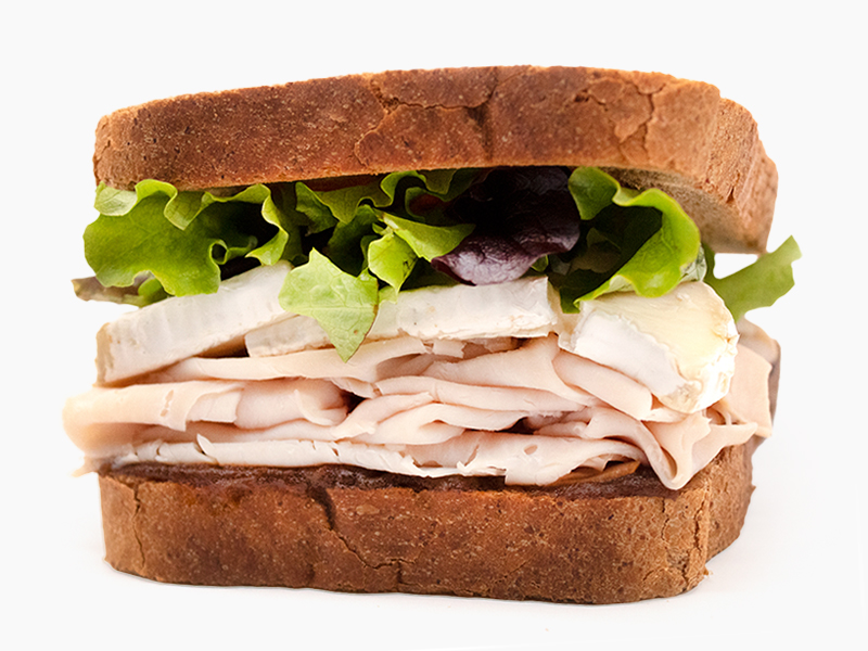 Eddie's smoked turkey breast, brie, baby field greens and apple butter, on wheat.
